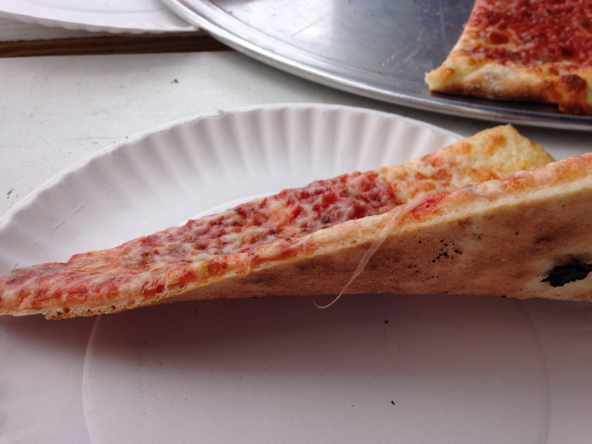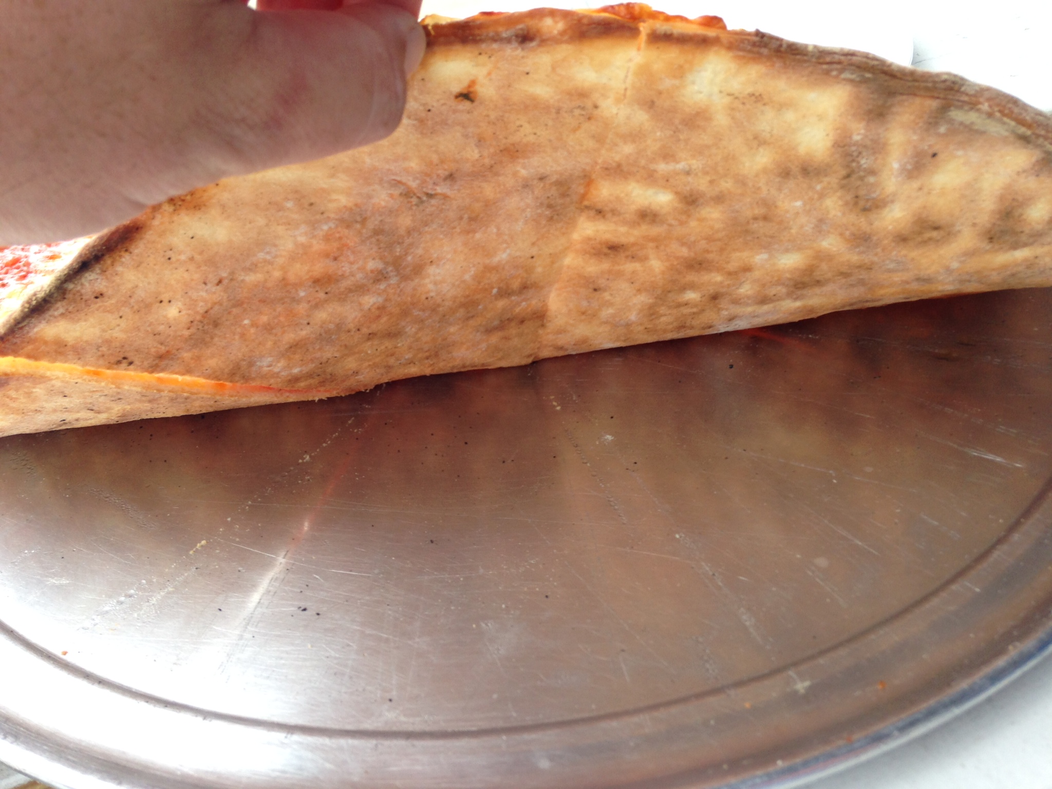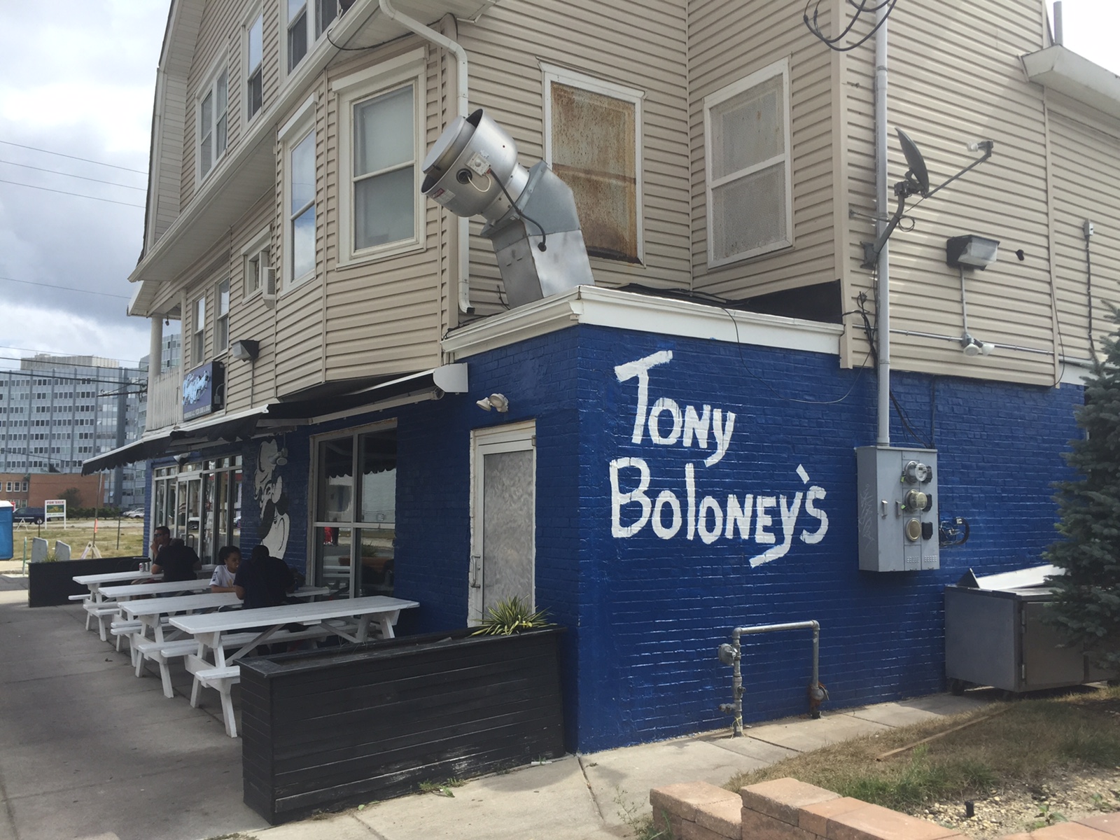 Time for the annual Atlantic City Trip. I was down with Ellio’s and special guest Garden Pie (so many veggies). Yelp brought us to Tony Boloney’s, a takeout joint at the north end of the boardwalk. We were able to dine al fresco and watch cars being towed to clear the way for the Miss America parade. If you hit it hard the night before, Mr. Boloney’s has an extensive hangover menu not to mention erotic strombolis?!? We ordered a large cheese and dug in. Good melt, good thinness, sauce was a little too sweet/herbed for our liking. 😐